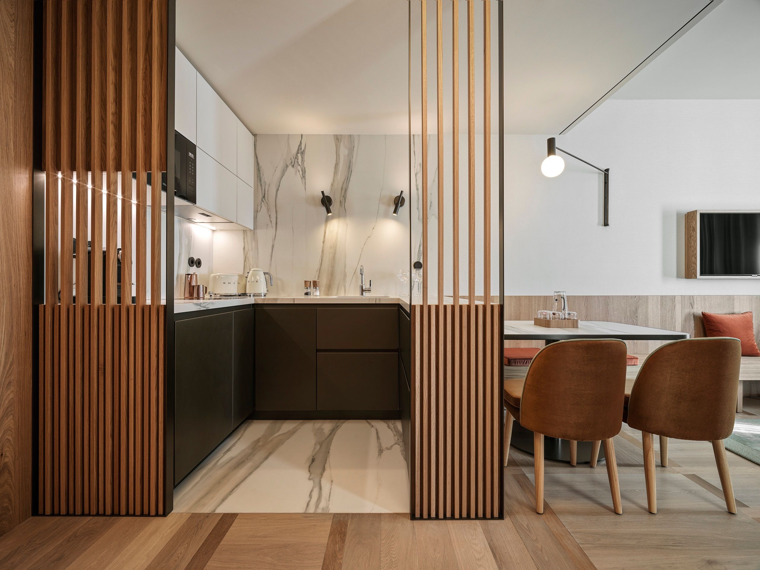Whether you’re staying for one night or a whole month, our 168 living spaces come in all sorts of sizes and arrangements to suit any kind of stay. Autumnal colours, natural materials and brass details feature throughout, alongside comfy beds, 100% cotton linens with a satin finish, fine bone china crockery from Villeroy & Boch and a kitchen kitted out with an array of top appliances to truly make you feel at home.