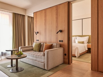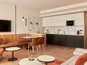 Everything you need for an extended stay, and a little more. The Deluxe One-Bedroom Suite offers separate living and sleeping areas, a fully equipped kitchen, and a bathtub that earns its place at the end of a long day. The layout is considered and unhurried – room to live in, not just sleep in.